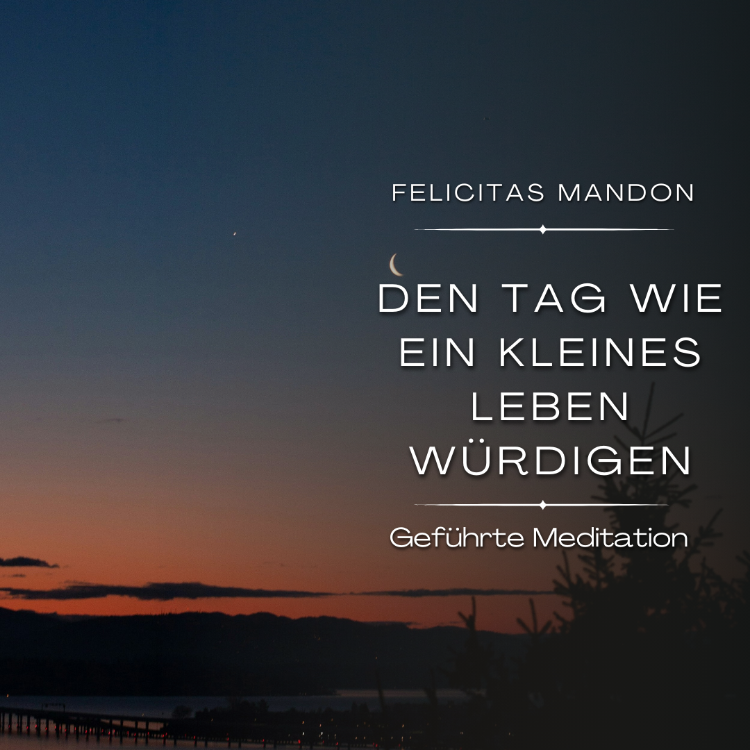 Diese Meditation gibt dir die Möglichkeit, deinen Tag zu würdigen: die Menschen, denen du begegnet bist, das, was du geschafft hast, die Schönheit, die dir begegnet ist, das, was dich genährt hat und auch das, was heute nicht gut war. Ganz ohne Druck. Ganz ohne Härte. Nur als liebevolle Einladung, deinen Tag noch einmal bewusst zu sehen.